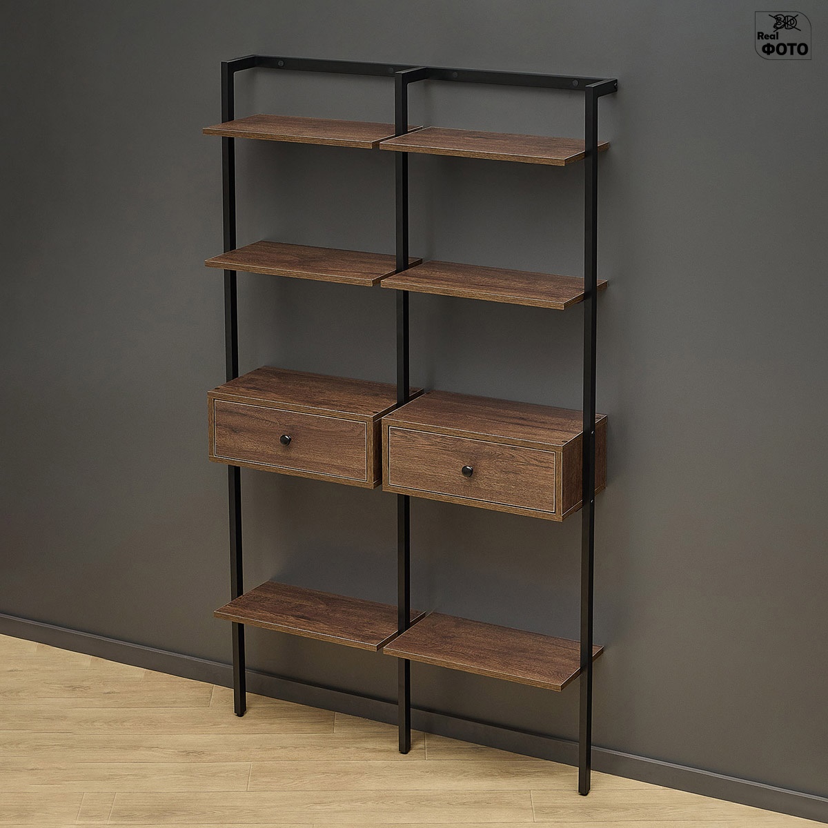 Стеллаж 2-х модульный на металлических стойках Базки 2Д дуб апрельский шоколадный ш104/г27/в177