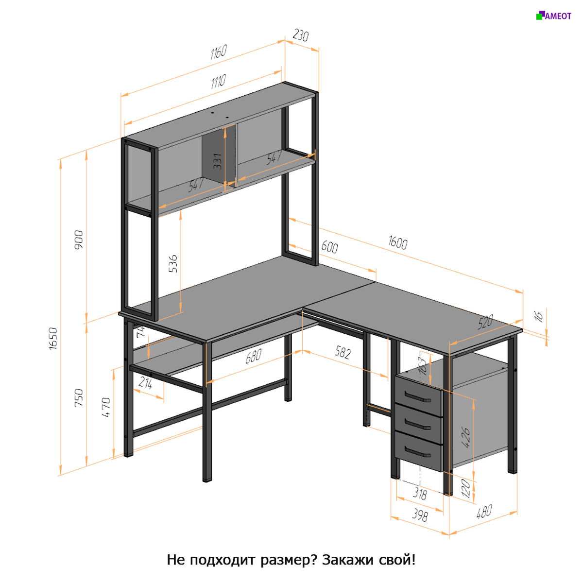 Внимание! угловые cтолы с надстройкой на металлокаркасе Даврит 4 из-за разнообразия размеров и цветов в наличии не поддерживаются и изготавливаются только на заказ.