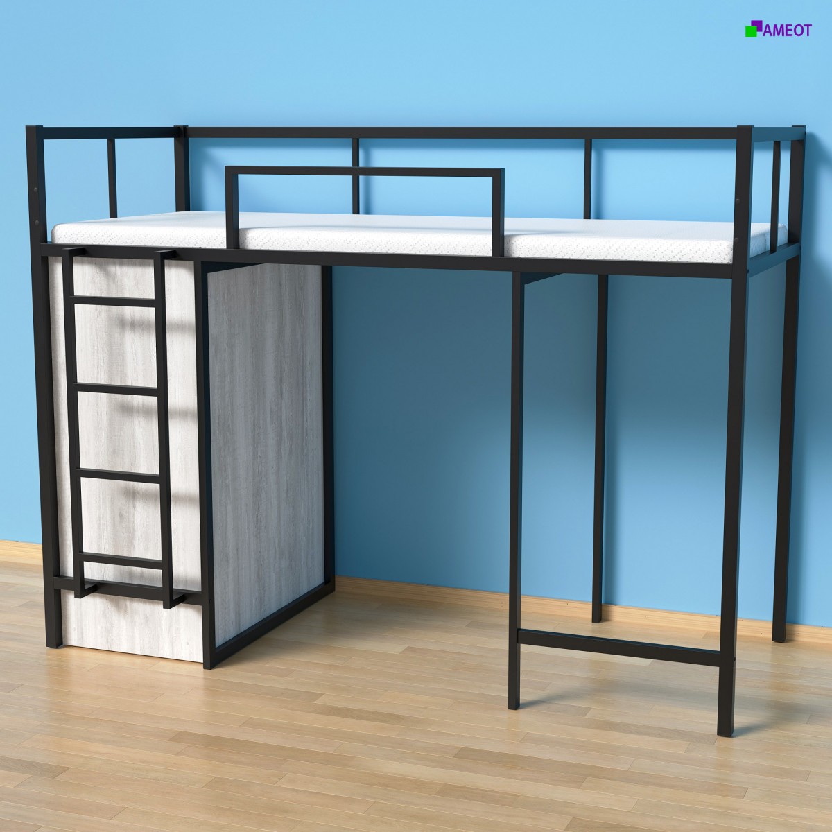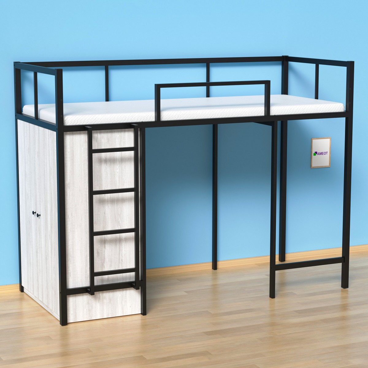 Двухъярусная кровать на стальном каркасе со шкафом