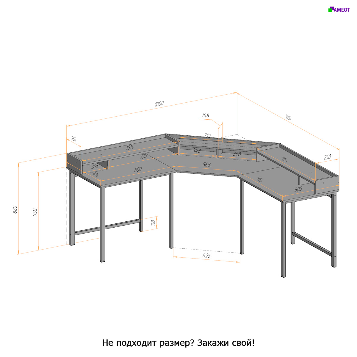 Из-за разнообразия размеров и больших габаритов - угловой стол Омброн изготавливается только индивидуально под ЗАКАЗ по ВАШИМ РАЗМЕРАМ.