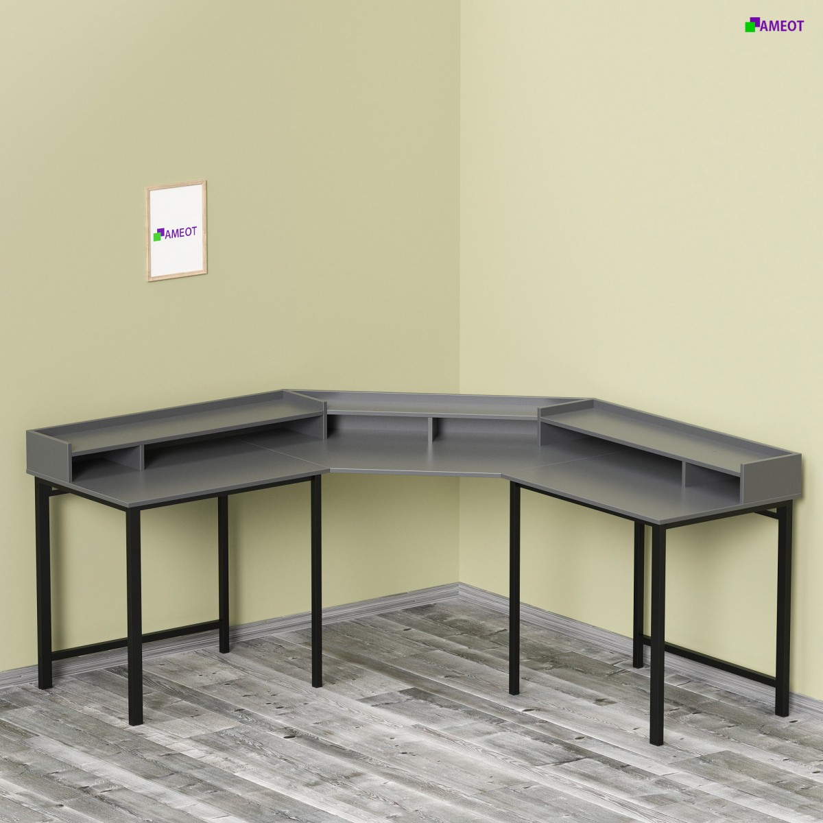 Вы можете заказать любую конфигурацию и размеры стола с 2-я углами и 3 столешницами.