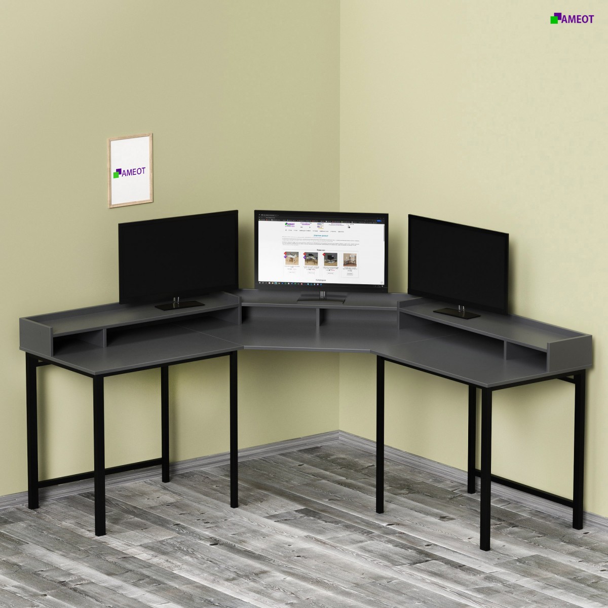 - В Едином лофт стиле к компьютерному столу можно приобрести навесные полки, тумбы, стеллажи другую мебель от фабрики АМЕОТ.
