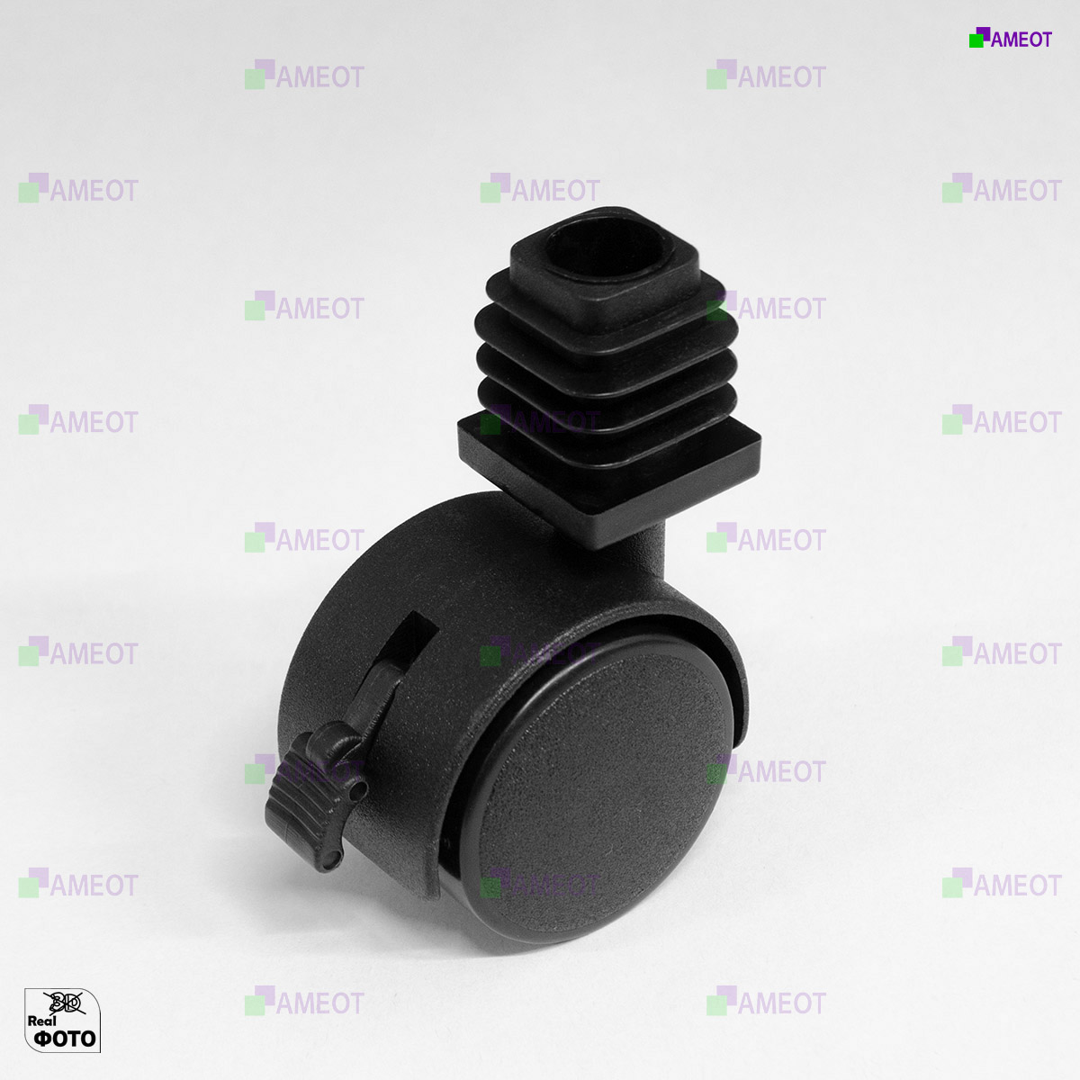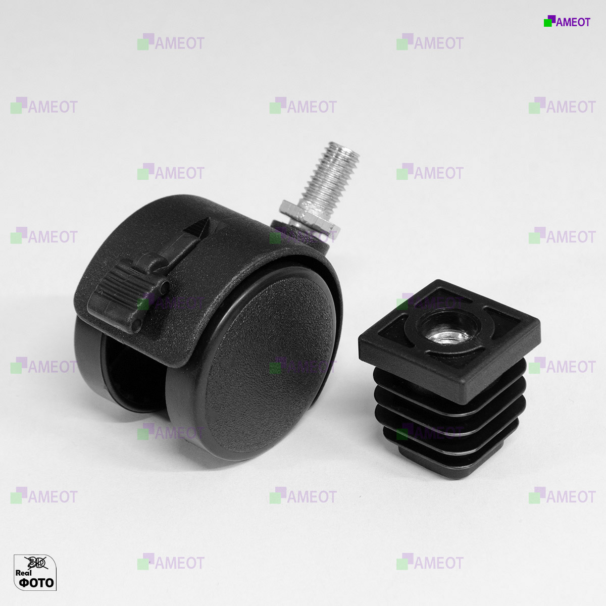 Комплект заглушка 25х25 с резьбой и колесная опора со стопором
