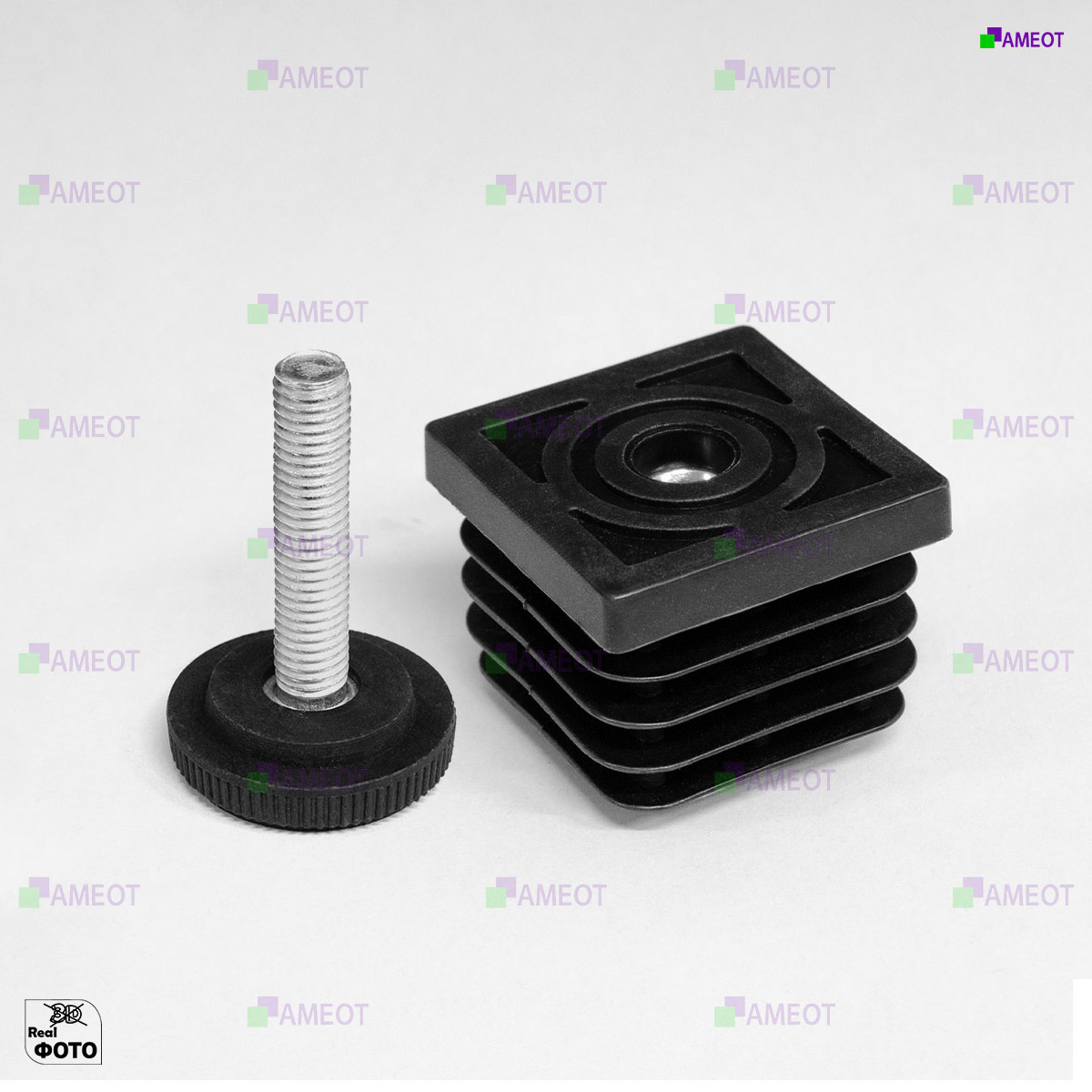 Заглушка 40х40 с резьбой М8 и резьбовая опора диаметр 32 мм, длина резьбы 45 мм.