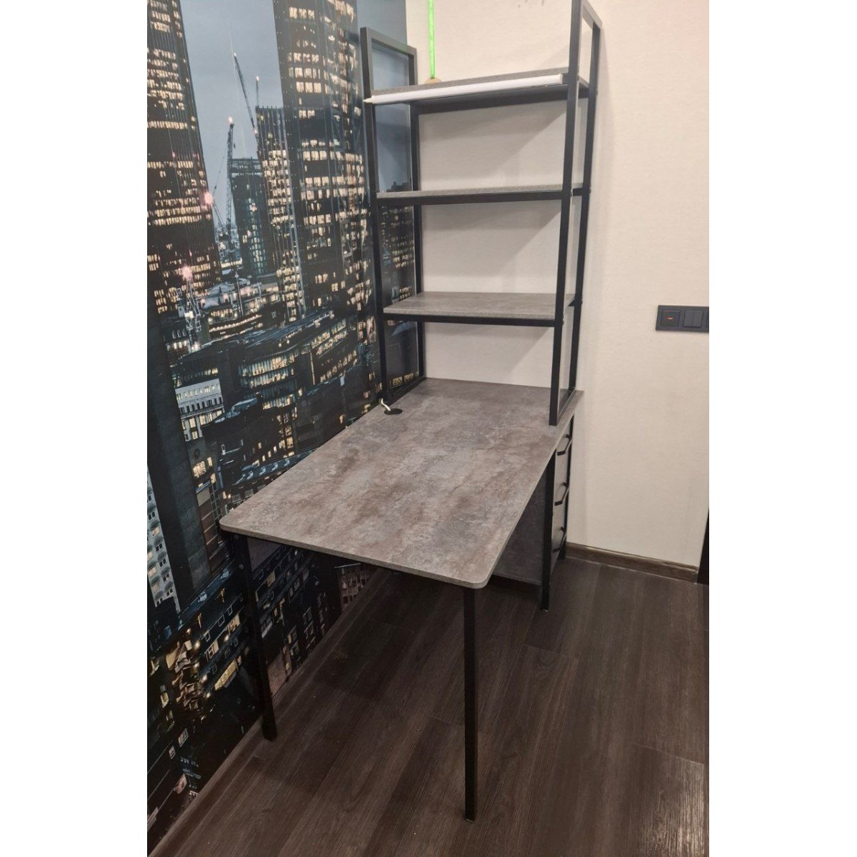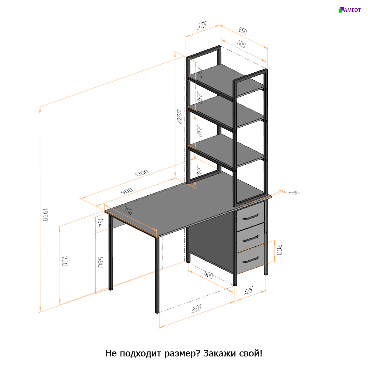 Вы можете зазазать любую конфигурацию и размеры стола, совмещенного со стеллажом.