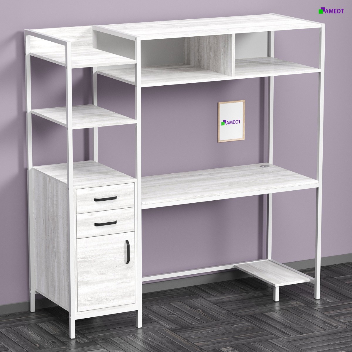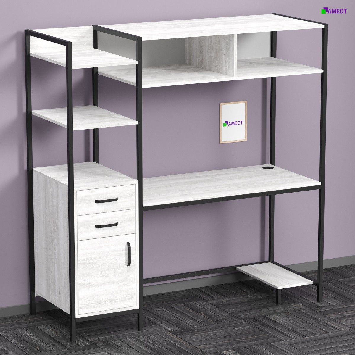 Особенности стола со стеллажами Скопасис 1 на металлическом каркасе: