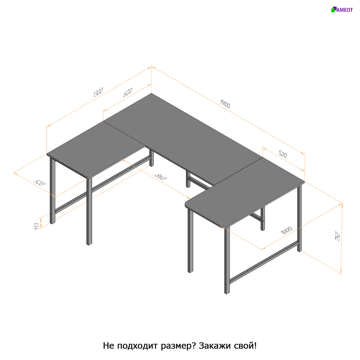 Вы можете заказать любую конфигурацию и размеры стола с 2-я углами и 3 столешницами.